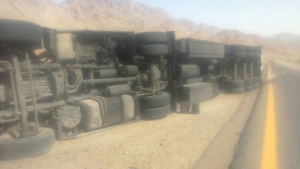 تدهور شاحنة محملة بحاوية أحذية وملابس