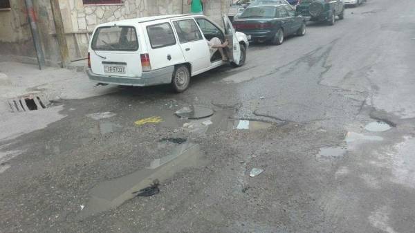 البحث عن الكنوز يتسبب بانهيار شارع في اربد (صور)