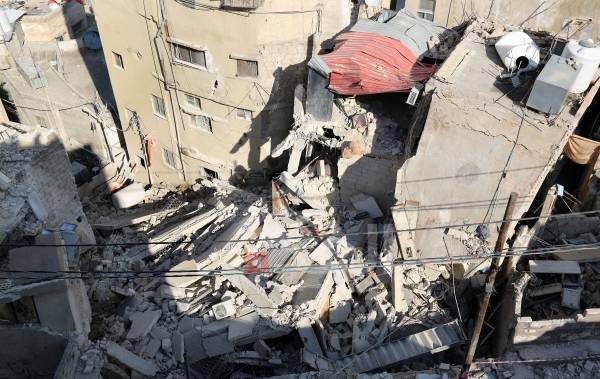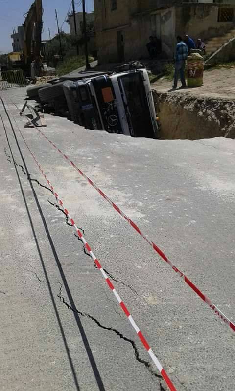 سقوط قلاب في انهيار شارع في اربد .. صور