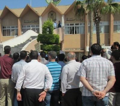 موظفو المياومة في "اليرموك" يحتجون للمطالبة بنهاية الخدمة