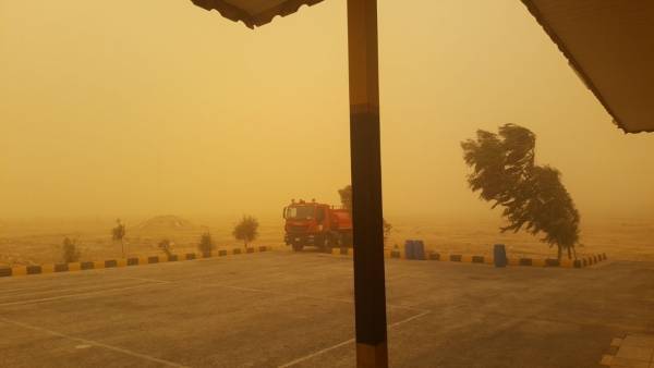 بالصور .. انعدام للرؤية على الطريق الصحراوي بسبب الغبار
