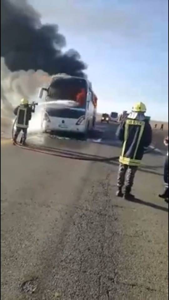 احتراق حافلة نقل عمومي في معان ..صور
