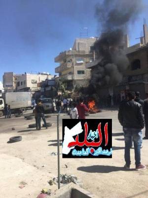 تجار الجويدة يغلقون شارعاً بالاطارات المشتعلة إحتجاجاً على مخالفات الأمانة(صور)