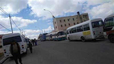 وقفة احتجاجية للباصات العاملة على خط المنشية جامعة البلقاء عن العمل