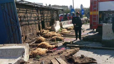 وفاة شخص بتدهور شاحنة محملة بالأغنام