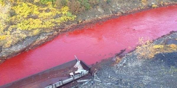 في روسيا... نهر يتحول ماؤه إلى لون الدم!!