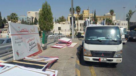 شاهد بالصور.. إزالة إعلانات المرشحين المخالفة على ''دوار الداخلية''