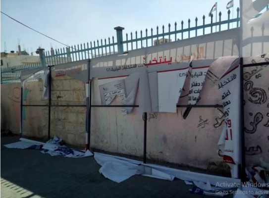 تحطيم لوحات دعائية لـ مستقلة الانتخابات في الكرك - صور