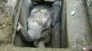 انقاذ فيل صغير سقط في حفرة للصرف الصحي في سريلانكا