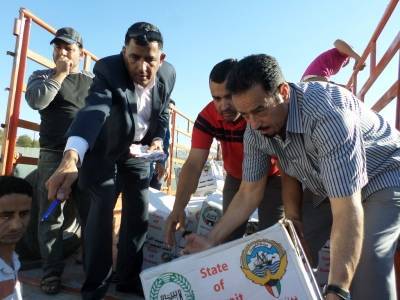 السفير الكويتي يتعرض لحادث سقوط اثناء توزيع مساعدات في عين الباشا