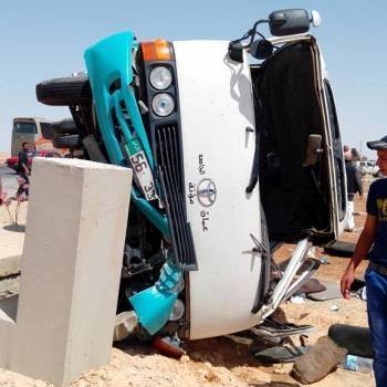 بالصور...إصابة 26 طالباً بينهم 4 بحالة خطرة بحادث مروع على الطريق الصحراوي