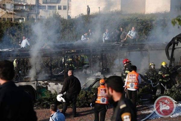 اصابات بين الصهاينة بانفجار حافلة ركاب بالقدس / صور