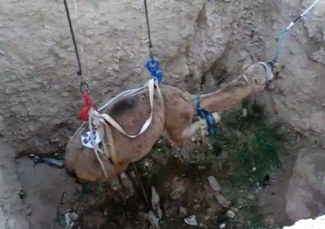 فيديو ممتع لجهود النشامى.. شاهد كيف أنقذ الدفاع المدني جملاً في المريغة بمعان