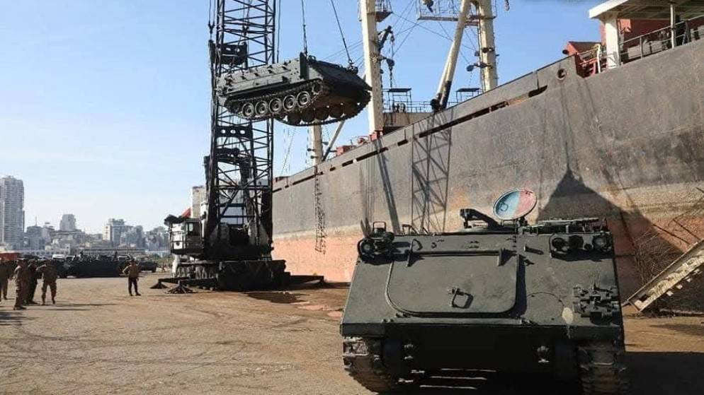 سفينة مساعدات عسكرية إلى الجيش اللبناني بتوجيهات ملكية تضم 62 ناقلة جند