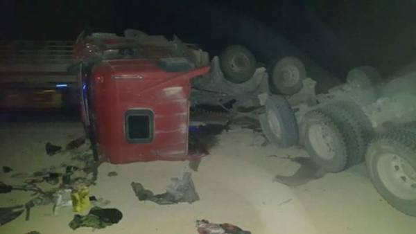 انقلاب شاحنة وإصابة سائقها على طريق الرشيدية .. صور