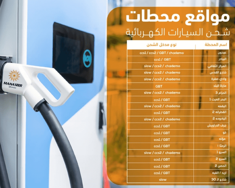 أول وأكبر شبكة وحدات شحن سريع للمركبات الكهربائية في المملكة لدى محطات المناصير