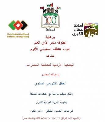 الجمعية الاردنية لمكافحة المخدرات تقيم حفلها السنوي بالتزامن مع مئوية الثورة العربية الكبرى