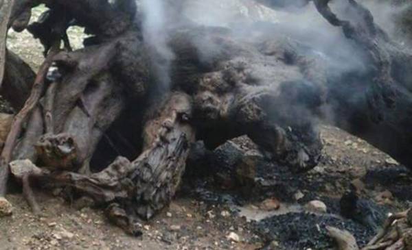 متنزهون يحرقون جزءا من شجرة عمرها ثمانية قرون .."صور"