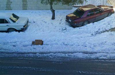إعلانات ساخرة في عمان لبيع الخبز والمكسرات بداعي»عدم تراكم الثلوج»
