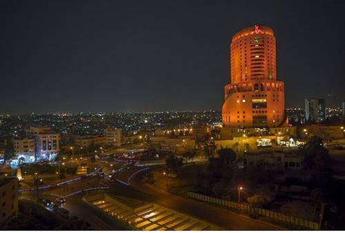 اضاءة البترا وفندق الرويال باللون البرتقالي