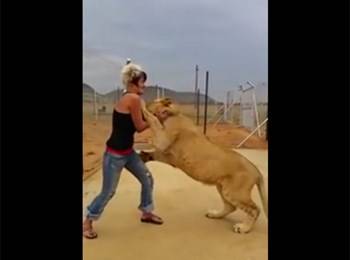 بالفيديو .. أسد يعانق فتاة بطريقة مدهشة