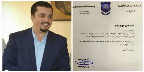 المحامي أندريه حواري عضواً في مجلس جامعة عمان الاهلية..