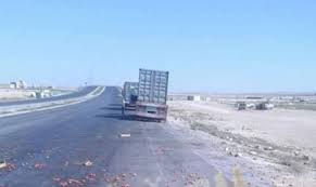 اصطدام تسع شاحنات على الطريق الصحراوي وخسائر مادية كبيرة