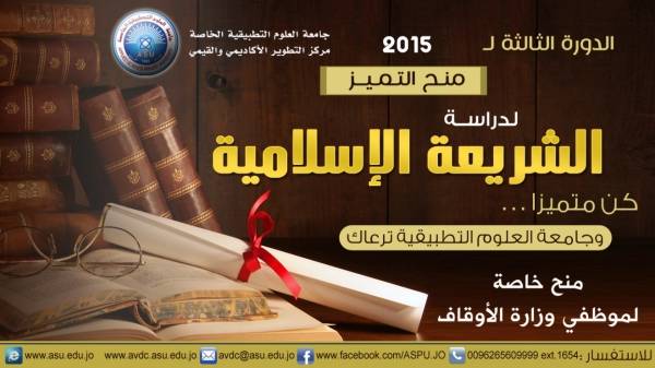 (جامعة العلوم التطبيقية) تطلق الدورة الثالثة من منح التميز لدراسة الشريعة الاسلامية