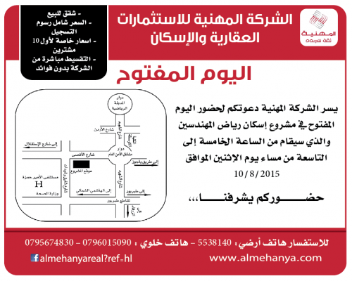 دعوة لحضور يوم مفتوح في مشروع اسكان رياض المهندسين