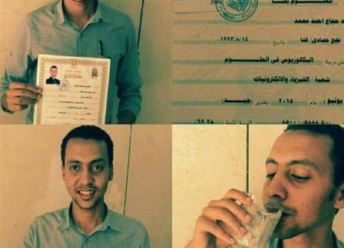 بالصور.. شاب يضع شهادة تخرجه في الماء ويشرب ’’ميتها’’