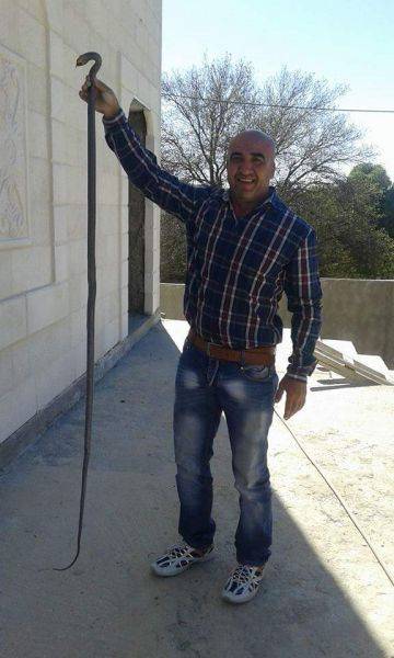 معلم يقتل حنشا بطول 210 سم في احدى المدارس