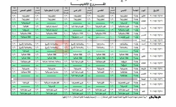 الجدول النهائي لامتحانات صيفية التوجيهي