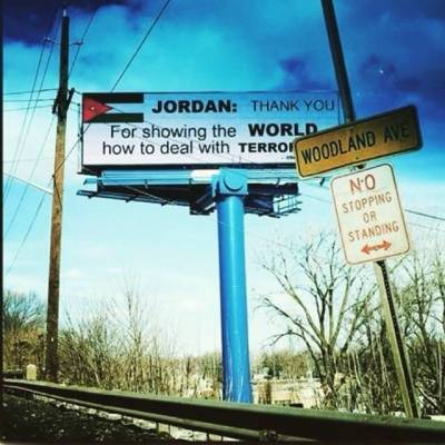 صورة : لافته علقت في ولاية نيوجرسي الامريكيه تقول شكرا للاردن