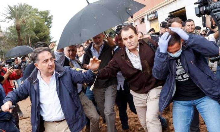 فيديو وصور || ملك إسبانيا يقطع زيارة له إثر احتجاجات ورمي الطين عليه وعلى زوجته