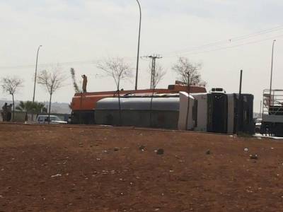 انقلاب صهريج نفط تابع لشركة خاصة في مدينة الزرقاء .. والدفاع المدني يحاول السيطرة .. شاهدوا الصور
