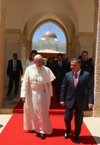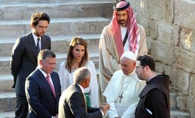 الملك والملكة وولي العهد يرافقون البابا فرنسيس إلى المغطس