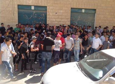 الرمثا: طلبة توجيهي يغلقون شارعا بالإطارات المشتعلة (صور)