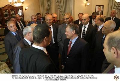 بالصور .. حطت طائرته في مديرية دفاع مدني البلقاء .. الملك يلتقي متقاعدين عسكريين في منزل محمد رسول العمايرة