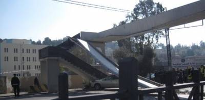 المحطة : السيارات تكدست على المسارب وازمة سير خانقة اثر جسر مشاة منهار