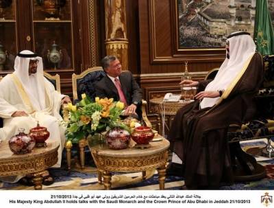 الملك يعقد مباحثات مع خادم الحرمين الشريفين وولي عهد أبو ظبي في جدة