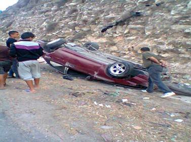 9 إصابات بحادث تصادم 7 مركبات على طريق العمري