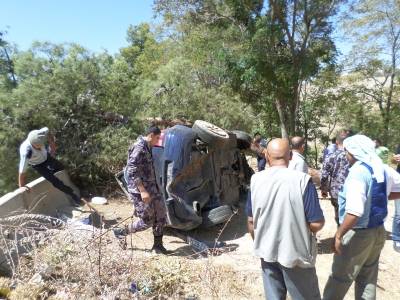 اصابة امرأة وطفلها في حادث تدهور على طريق السلط
