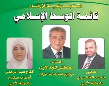 قائمة الوسط الاسلامي لانتخابات الزرقاء .. حسم شبه مؤكد للفوز رئيسا واعضاء .. وبلدوزرات دعم تقف وراء المجدلاوي وصفيرة والخضري