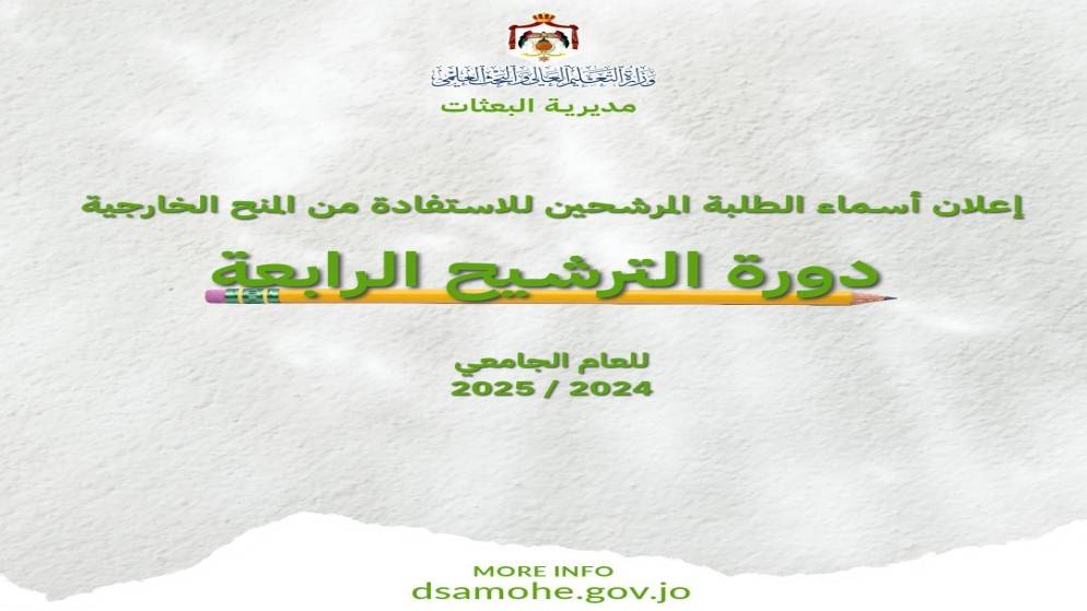 إعلان نتائج ترشيح الدورة الرابعة للمنح الخارجية للعام الجامعي 2024-2025