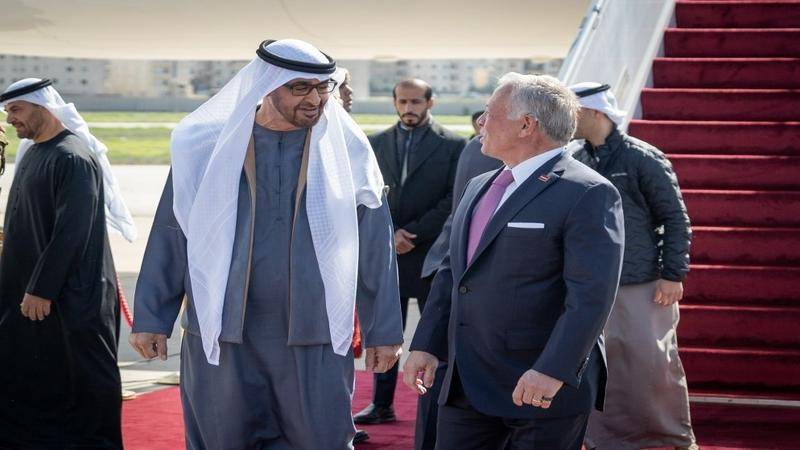 الملك يعقد مباحثات مع الشيخ محمد بن زايد آل نهيان في قصر بسمان الزاهر