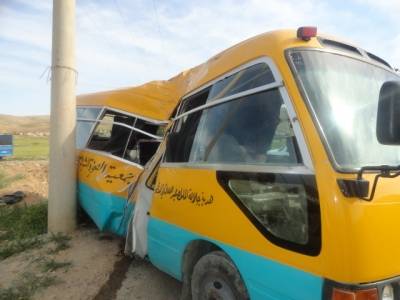 اصابة ٦ اطفال بجراح في حادث لحافلة روضة .. صور