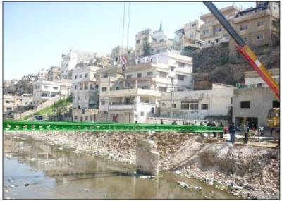 بلدية الرصيفة تنفذ عملية تركيب جسر للمشاة على سيل الزرقاء