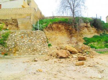 انهيارات صخرية بجانب مدرسة بجرش تهدد سلامة الطلبة