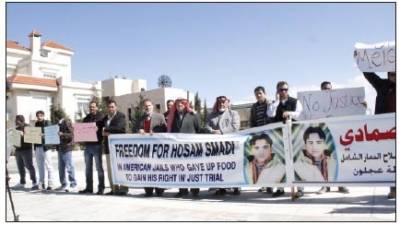 اعتصام أبناء عجلون أمام السفارة الأمريكية احتجاجا على ظروف اعتقال الصمادي