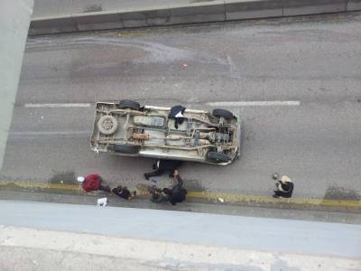 انقلاب سيارة في نفق الدوار السابع .. صور